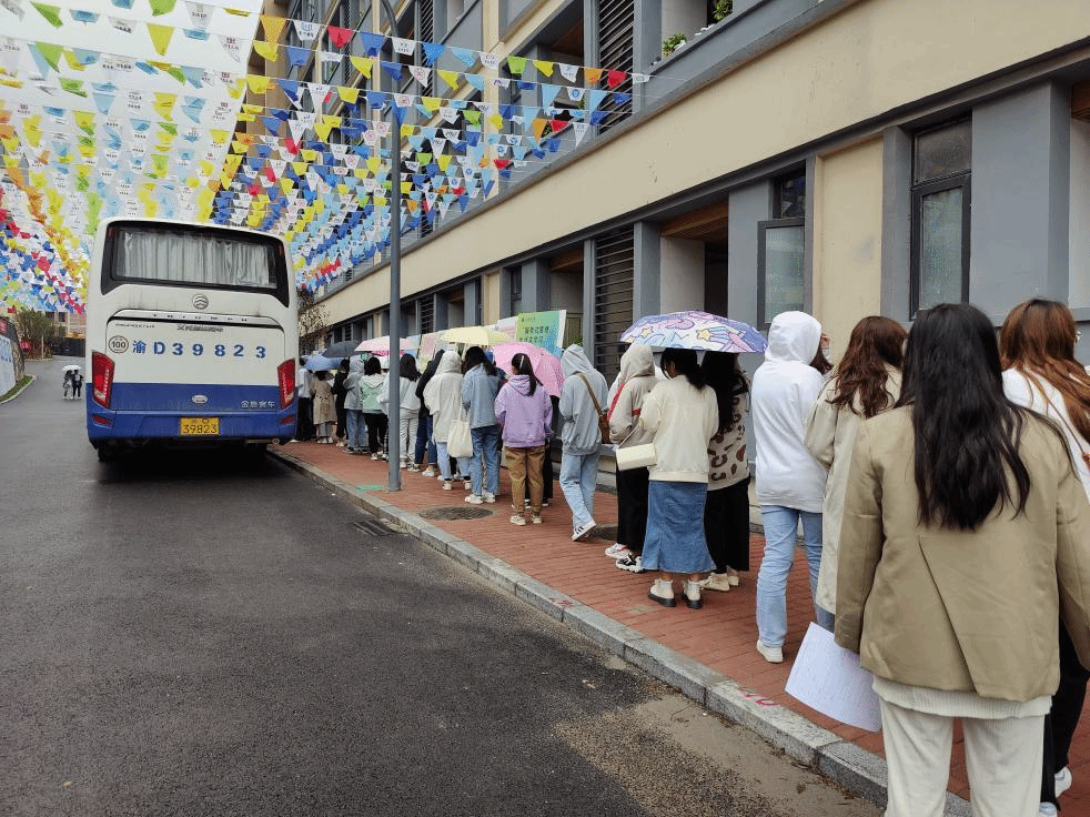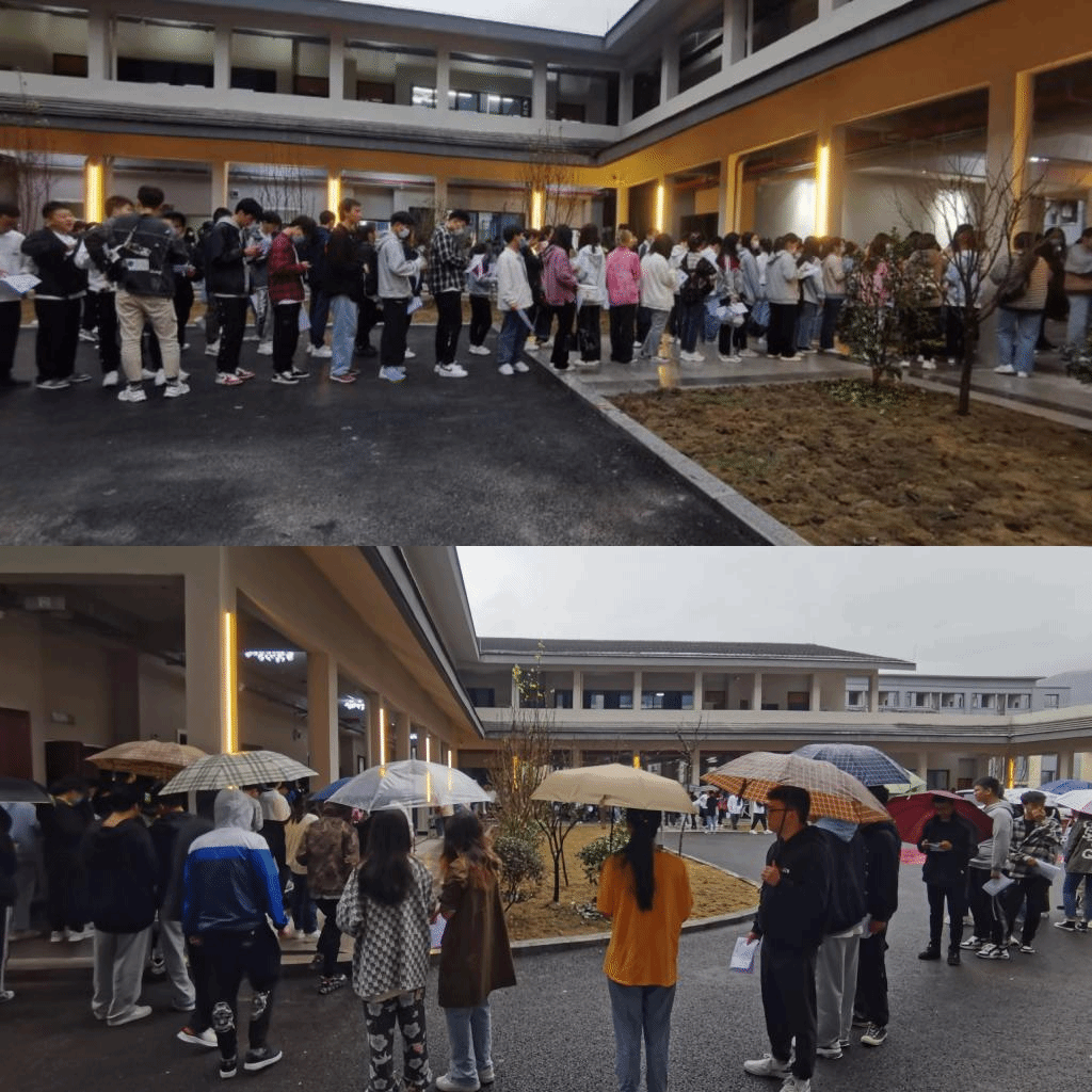 尽管天上下着蒙蒙细雨,也抵挡不住同学们一大早就来到体检现场的热情,同学们井然有序地在指定区域排好队,积极配合医务人员的体检。